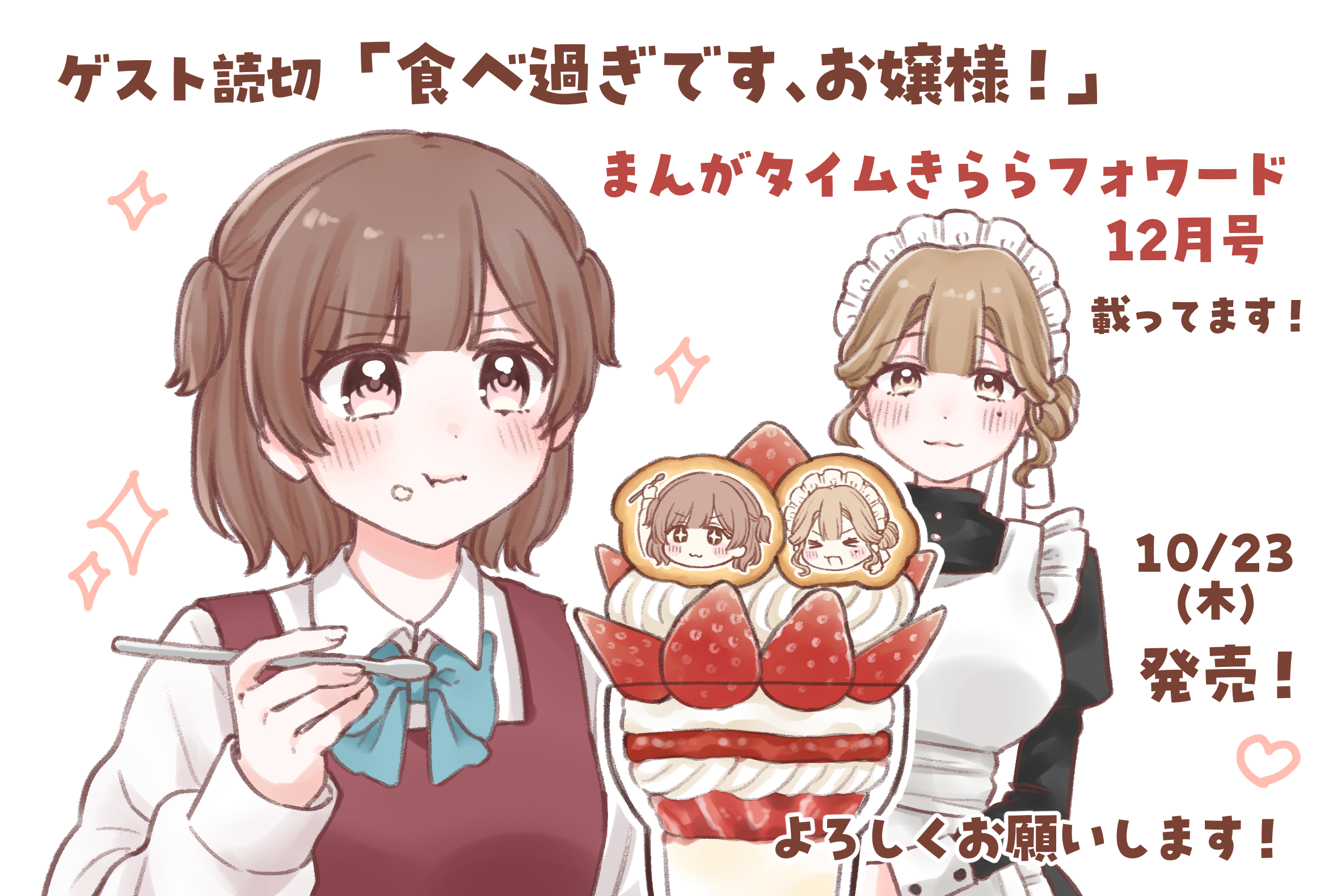 タイトルの通り、、、10/23発売のまんがタイムきららフォワード12月号にて、ゲスト読切「食べ過ぎです、お嬢様!」が掲載されています! 嬉しい・・・・;; 実は、7月から準備していたので、こうして掲載の報告ができたこと、とても嬉しいです!!少しでもたくさんの方に読んでもらえたらな...